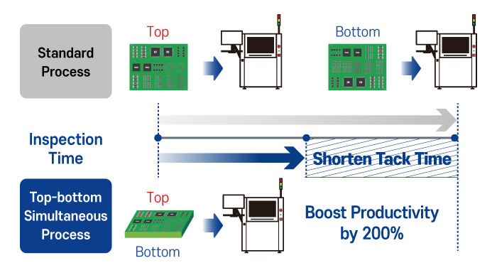 MV-6TB는 단일 시스템에서 상·하면 동시 검사를 구현하여, 기존의 순차 검사 공정을 제거합니다.